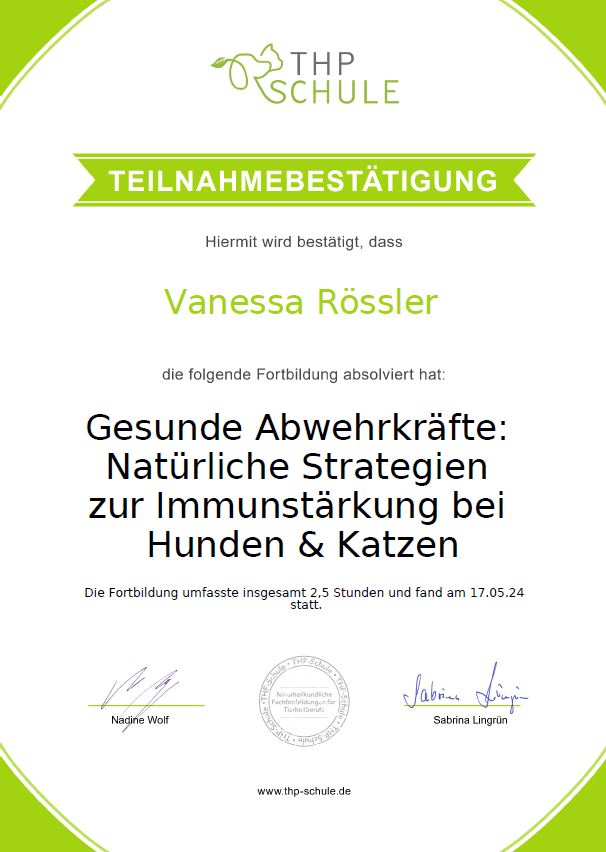 Als Ernährungsberater ist es mir sehr wichtig, Dein Tier in allen Lebenslagen kompetent unterstützen können. Da es da jedoch einiges zu beachten gibt, besuche ich sehr viele Fortbildungen, um immer am letzten Stand zu sein und mir ein umfassendes Wissen anzueignen. Auch bei den Fortbildungen achte ich natürlich darauf, dass die Katzen nicht zu kurz kommen.